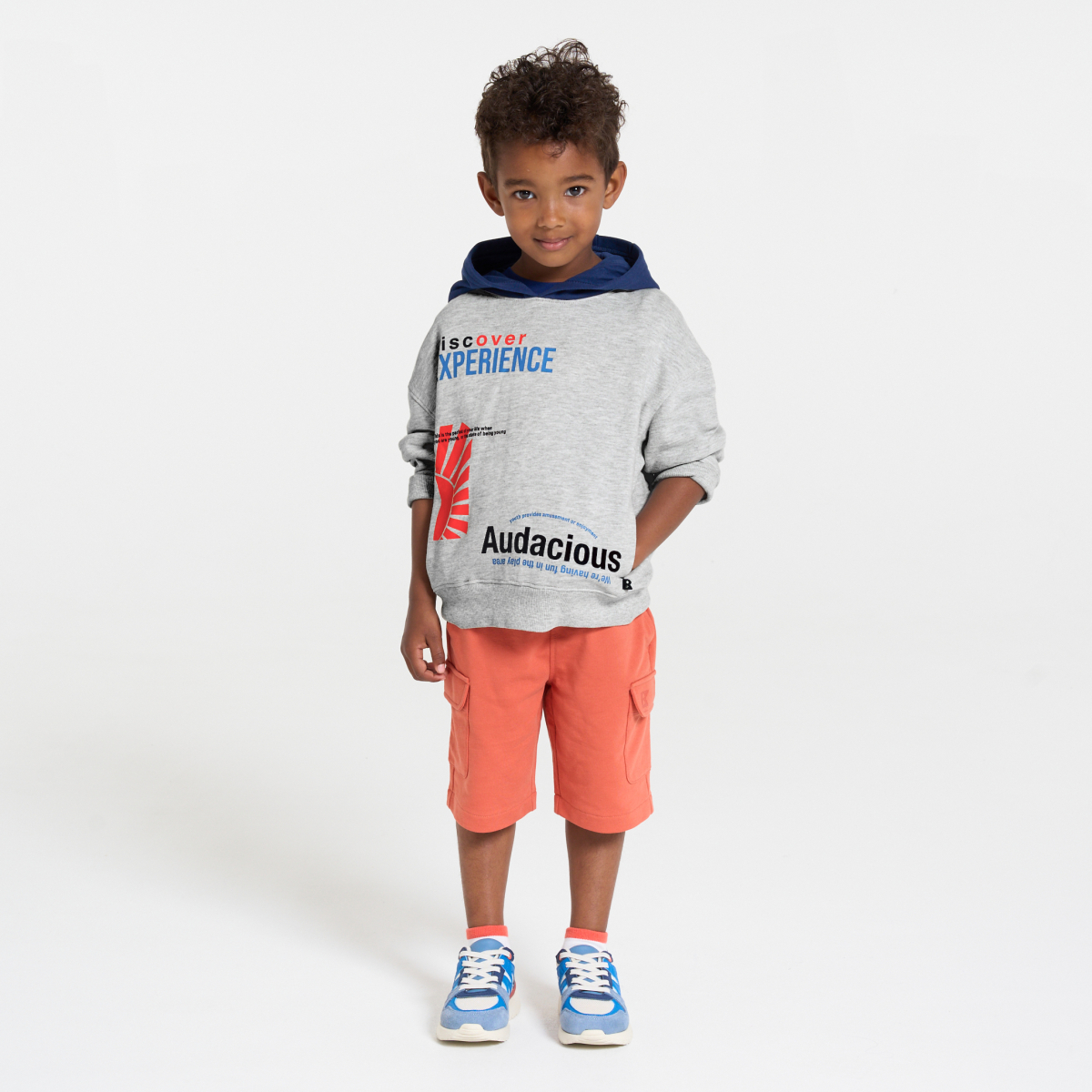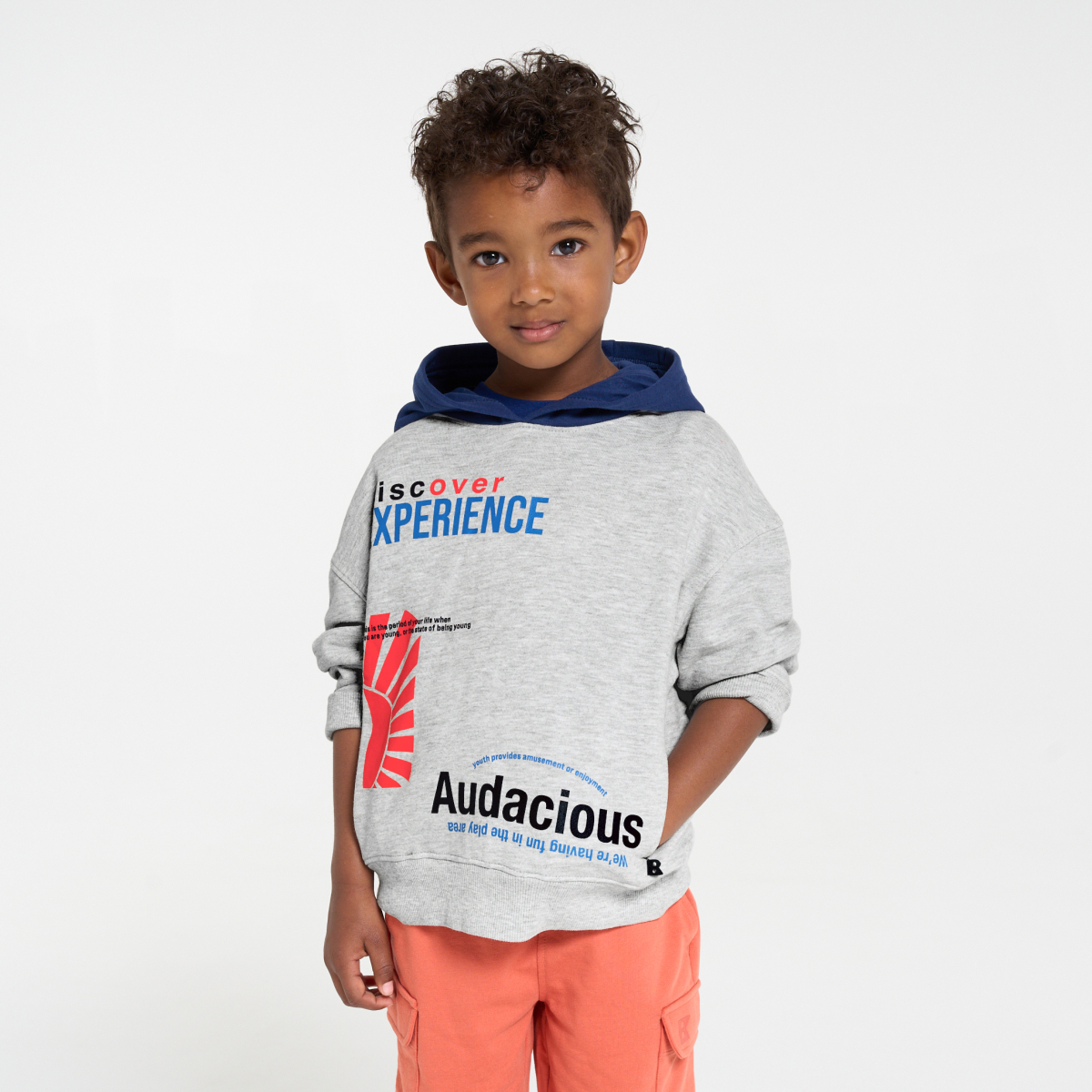 L'audace est toujours utile quand il s'agit de vivre de nouvelles expériences : les garçons font passer le message avec ce hoddie à capuche ! Molleton doux. Capuche contrastée et doublée en jersey. Motifs imprimés devant. 1 poche kangourou. Emmanchures descendues. Manches longues. Bords côtelés.