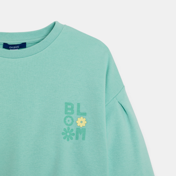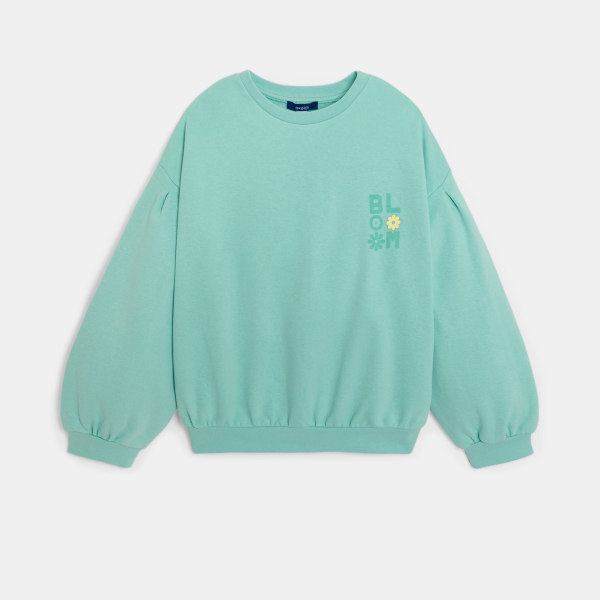 Description Beau volume augmenté, pile dans la tendance ! Les filles sont fans de ce sweat-shirt en molleton doux (intérieur bouclettes). A noter : des plis qui accentuent le bouffant des manches longues et un motif imprimé sur la poitrine. Col rond. Base droite.