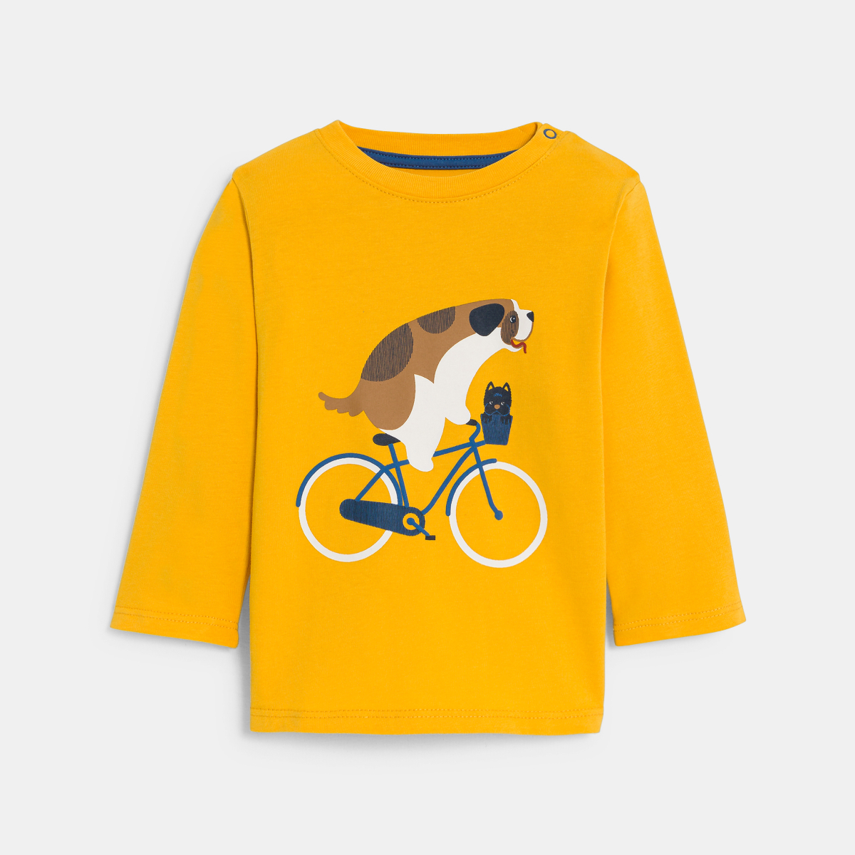 Un chien qui fait du vélo ? Il n'y a que sur ce tee-shirt amusant qu'on peut en voir ! Une base manches longues en coton avec pressions à l'épaule pour un habillage facile des garçons.