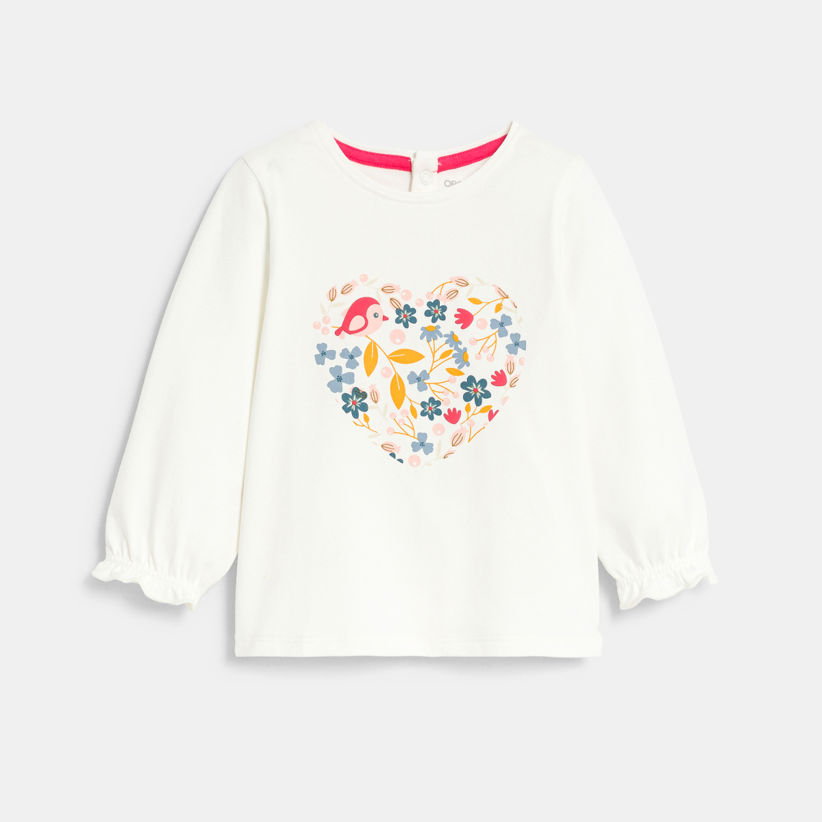 Un cœur fleuri ravissant sur un tee-shirt qui plaît aux petites romantiques, on adore ! Manches longues élastiquées aux poignets et encolure ronde pressionnée.