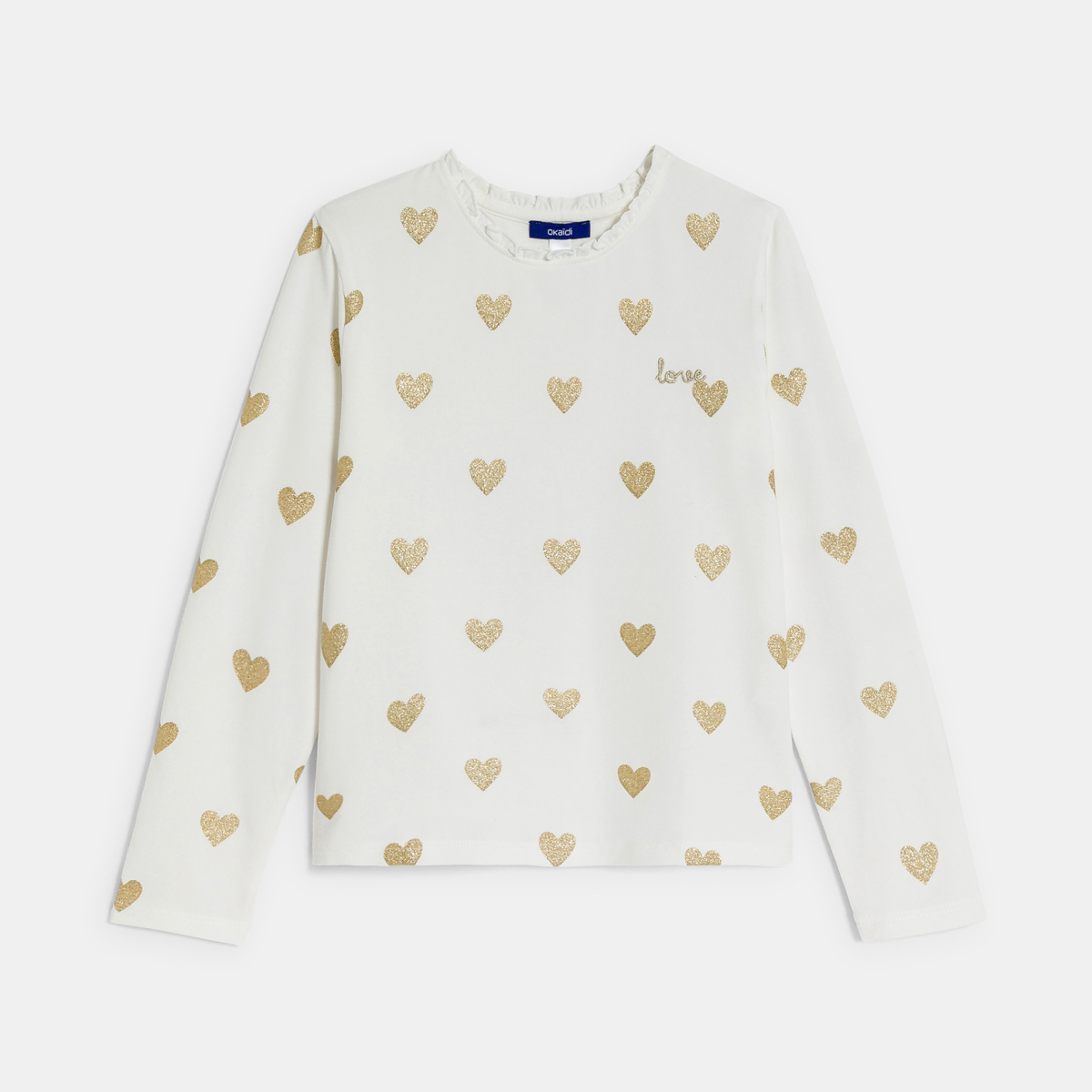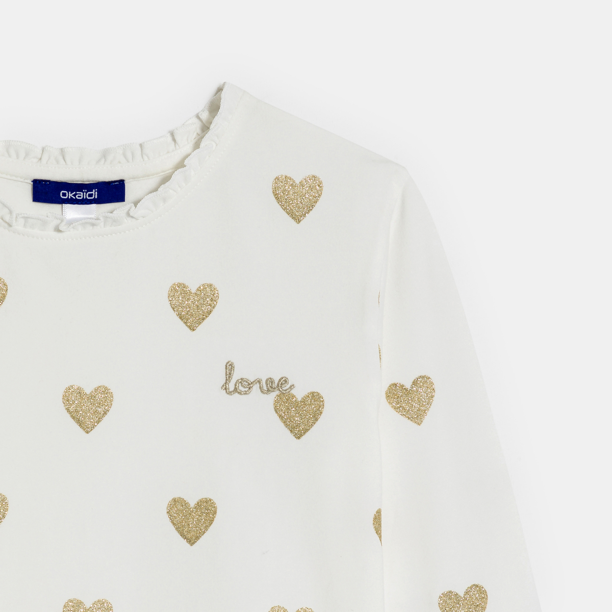 Petits cœurs broderie "love" et col collerette : les filles ont le coup de foudre immédiat pour ce t-shirt en jersey doux ! Facile à coordonner avec une jupe en jean un pantalon en velours ou un short en toile. Coupe droite. Col rond. Manches longues. Base droite. Finition surpiquée.
