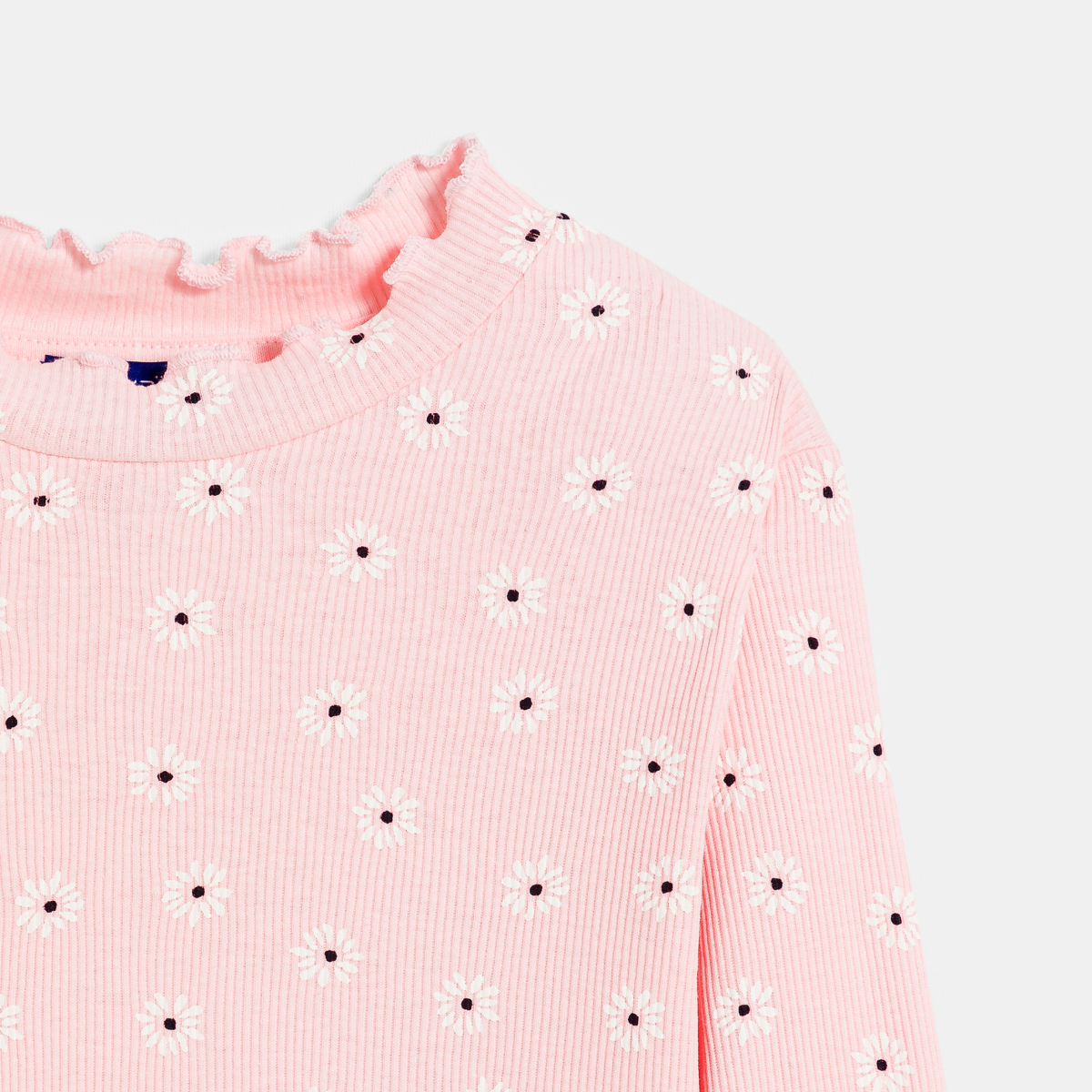 Description Petites fleurs romantiques et confort en vue : les filles ne peuvent pas se passer de ce t-shirt manches longues en jersey côtelé. Elles aiment son col rond volanté et la douceur de son jersey extensible. Coupe droite près du corps. Base légèrement arrondie.