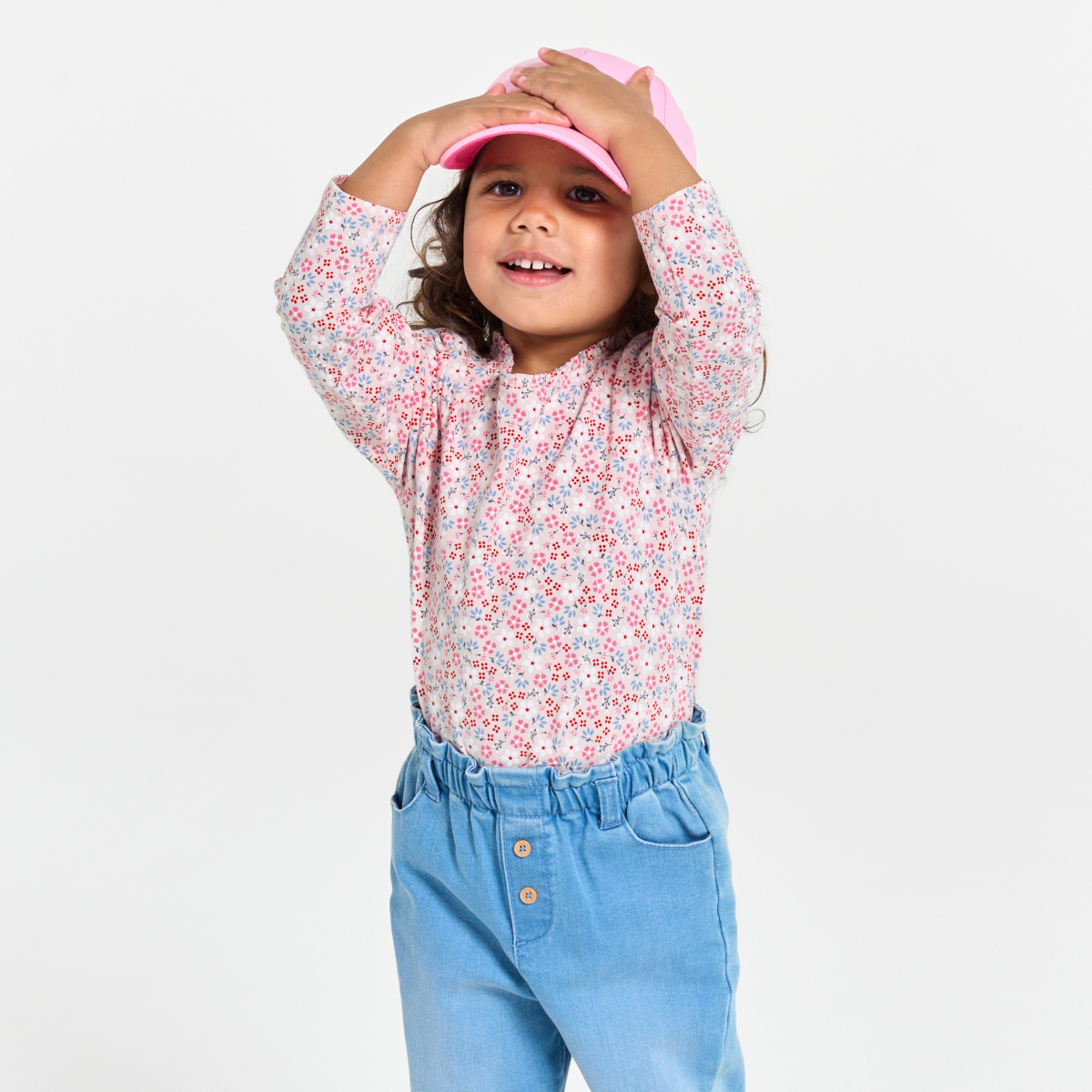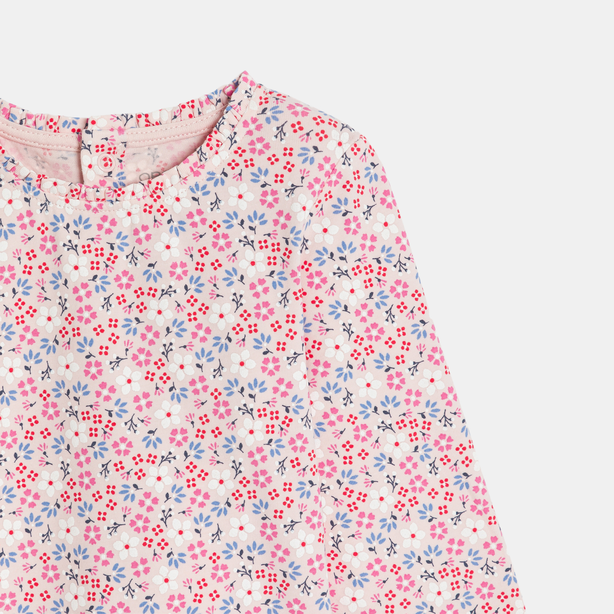 Description Une maille extensible et souple pour un tee-shirt manches longues tout confort. Imprimé graphique floral all-over pour les petites romantiques. Petit col fantaisie et fermeture par trois pressions dos.
