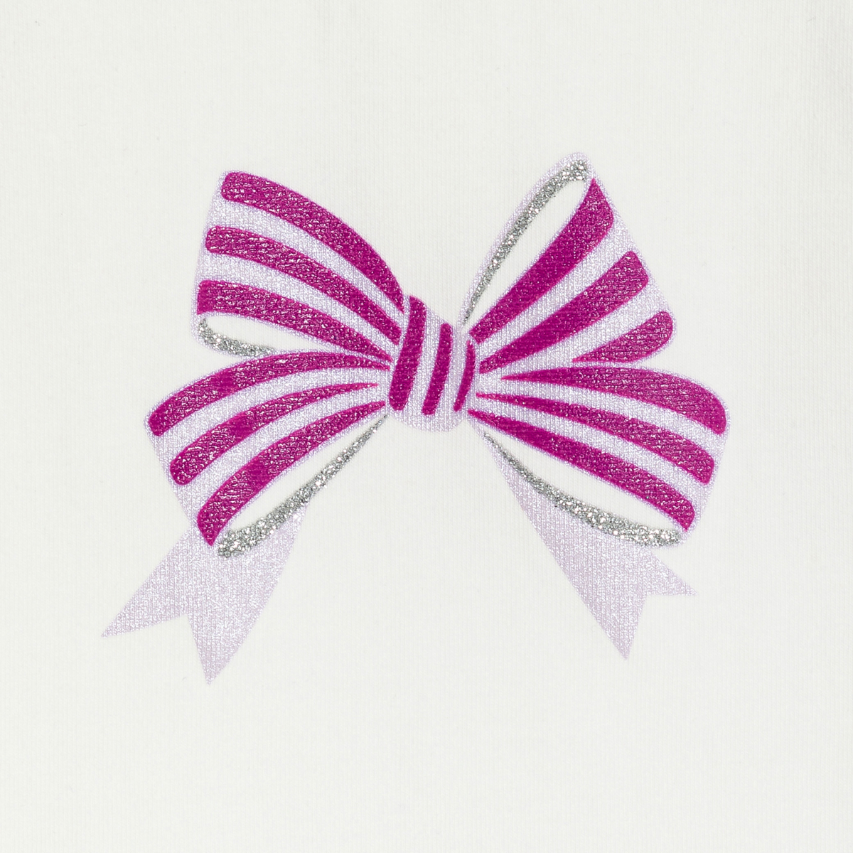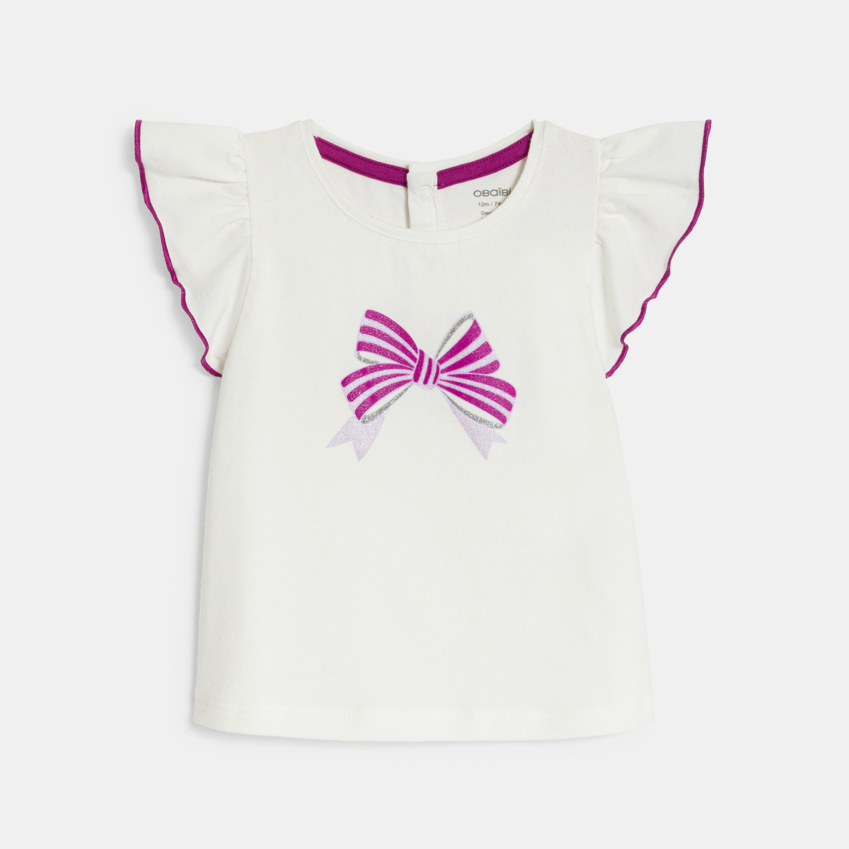 Les filles adorent les détails de ce tee-shirt : des manches courtes volantées et un nœud brillant imprimé sur le devant. Pressions dos pour habiller facilement les petites.