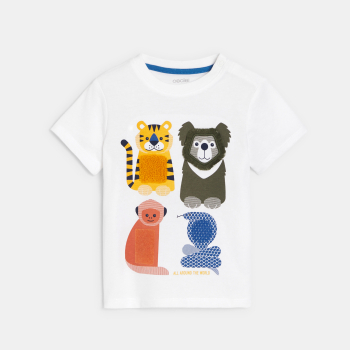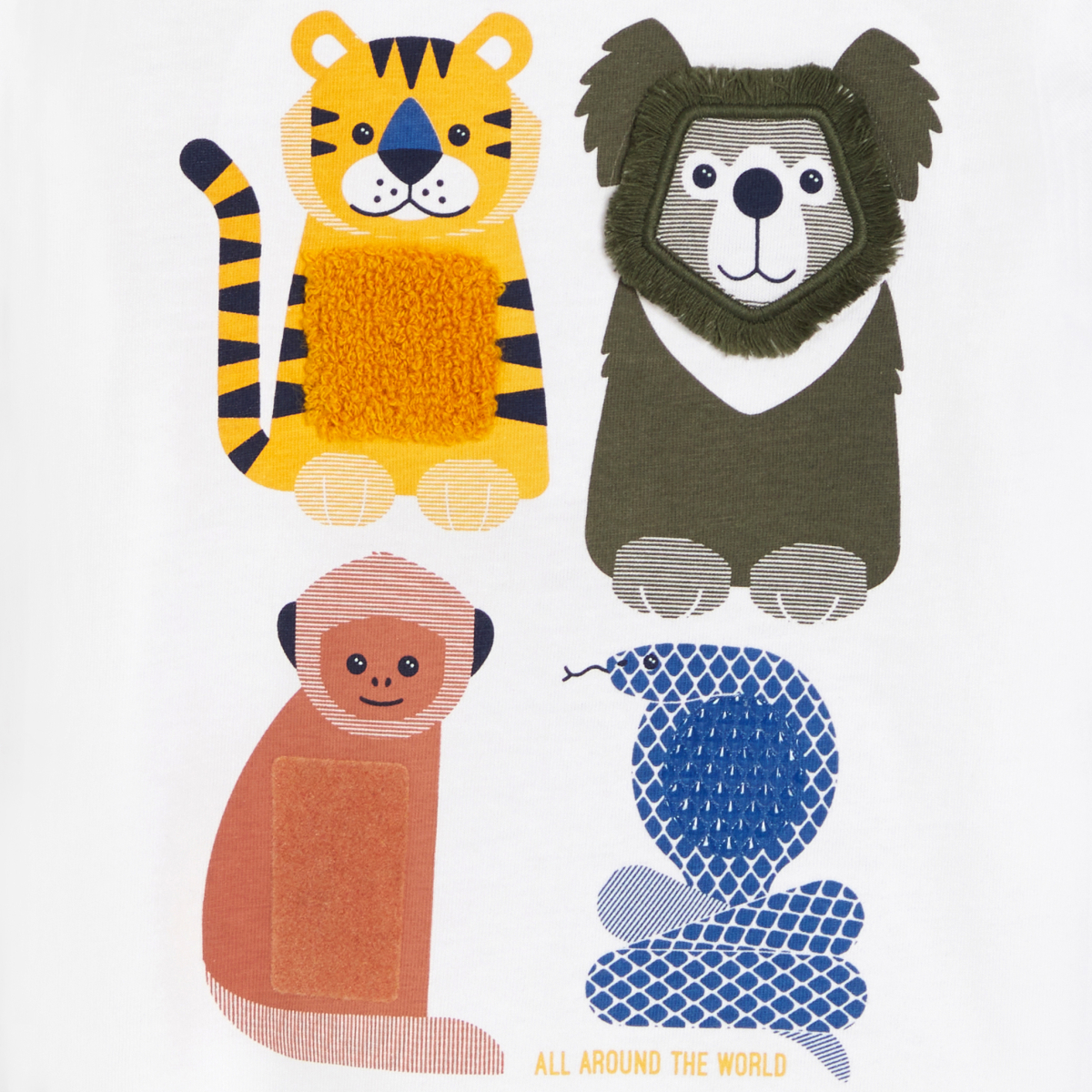 T-shirt animation sensorielle animaux blanc bébé garçon