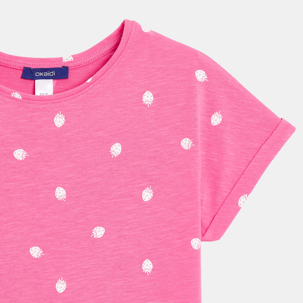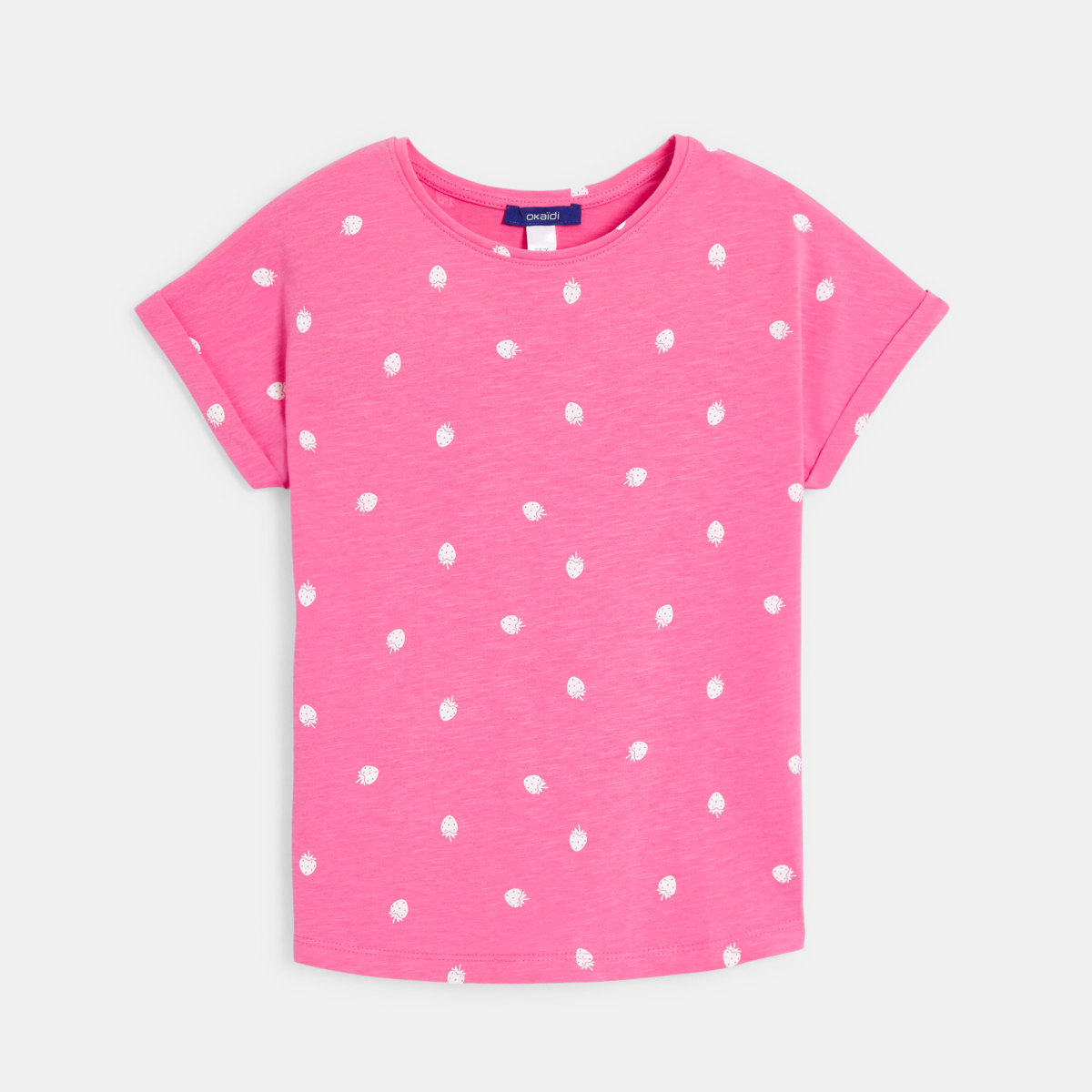 A croquer ! Ce t-shirt en jersey doux fait place à plein de fraises imprimées : parfait pour filer vers la belle saison ! Coupe droite. Col rond. Manches courtes à revers piqués. Base légèrement arrondie. Coutures ton sur ton.n