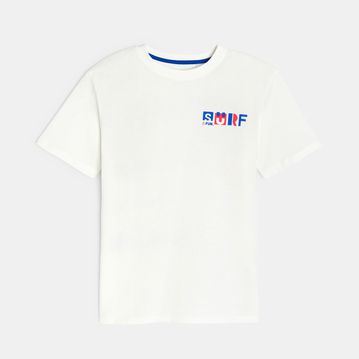 Sport de glisse et fun en vue avec ce t-shirt prêt pour la belle saison. Focus sur les motifs graphiques sur la poitrine et dans le dos. Jersey doux. Coupe droite. Col rond côtelé. Manches courtes. Base droite. Coutures ton sur ton.