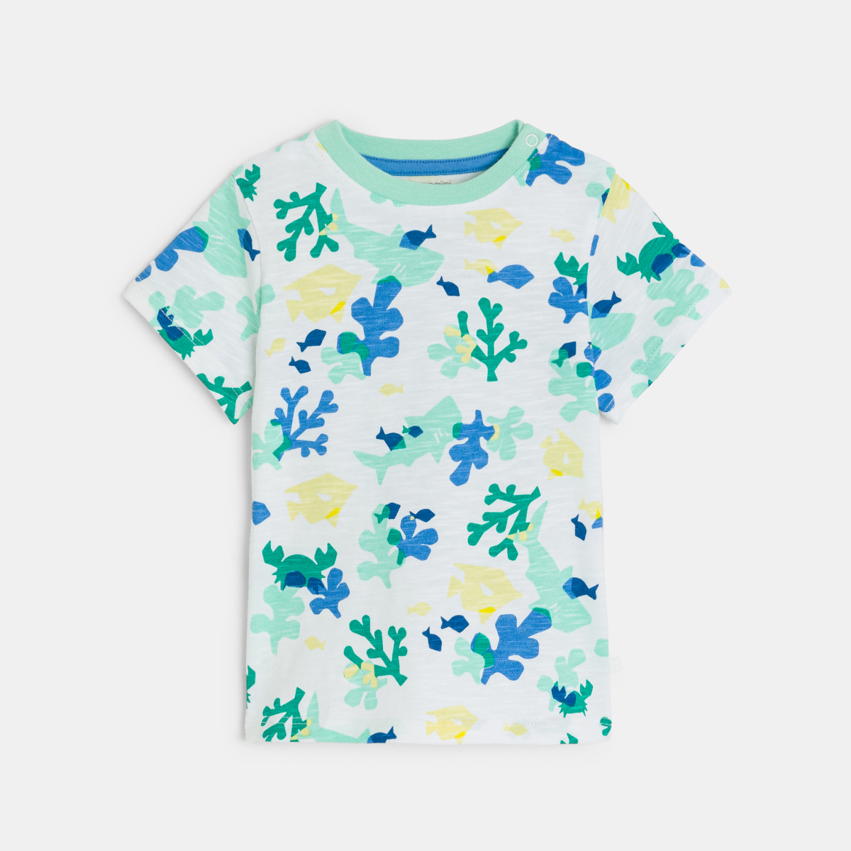 Essentiel dans le dressing des beaux jours le tee-shirt manches courtes s'anime d'une illustration sur le thème des fonds marins. Une forme droite en jersey de coton doux qui plaît à tous les garçons.