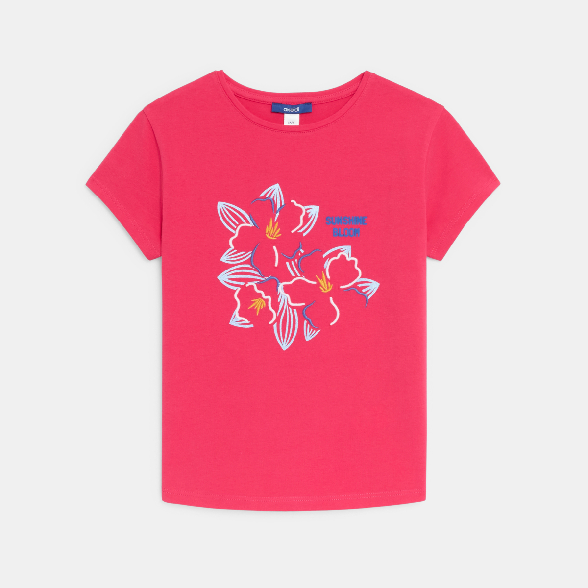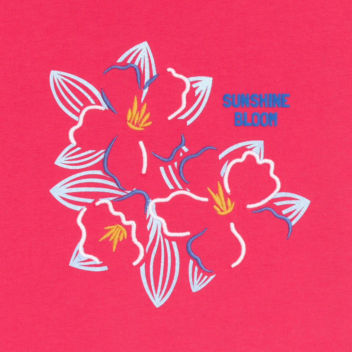 Un message positif, des fleurs imprimées, brodées et rehaussées de motifs pailletés : quel beau programme pour entamer la belle saison avec un t-shirt en jersey doux ! Coupe droite. Col rond. Manches courtes. Base droite. Couture ton sur ton.