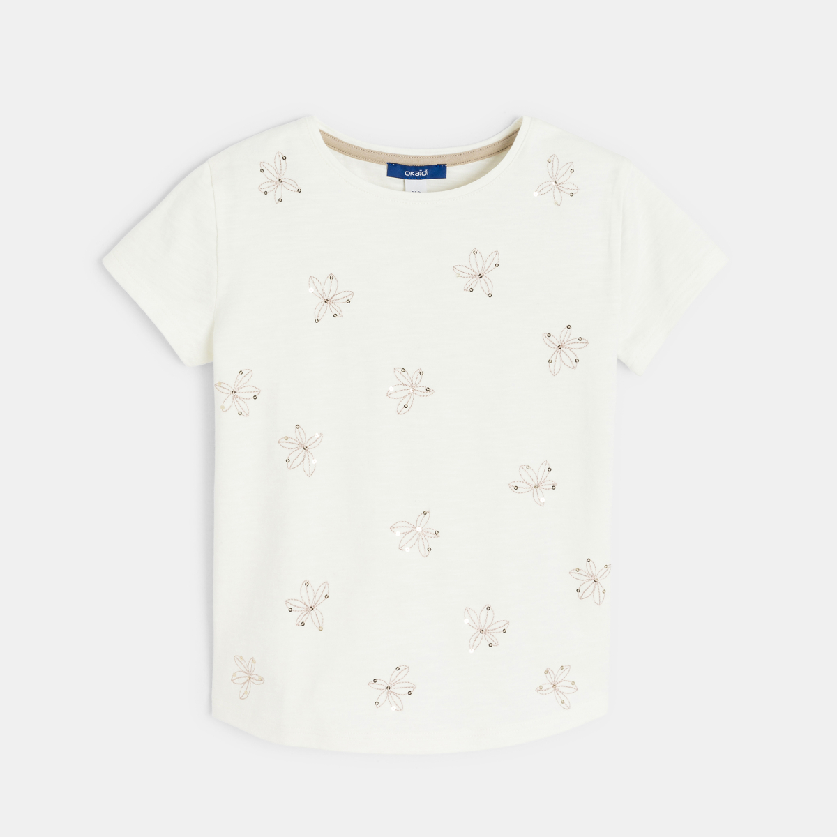 T-shirt manches courtes à fleurs brodées blanc Fille
