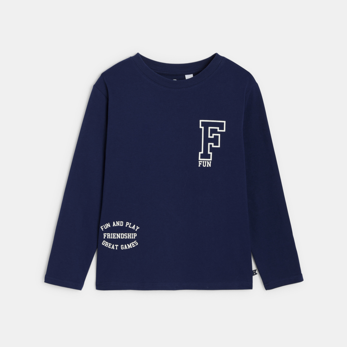 Fun time now : les garçons n'attendent pas une minute pour passer du bon temps avec ce t-shirt en jersey doux ! Coupe droite. Message imprimé devant, dos uni. Col rond. Manches longues. Base droite. Coutures ton sur ton.