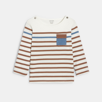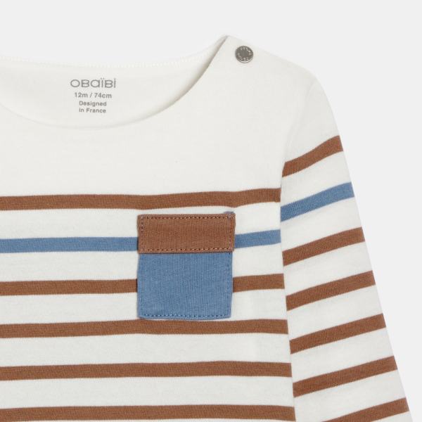 Description Pour les marins en herbe, un tee-shirt manches longues esprit marinière. Joli jeu de rayures et poche poitrine. Passage de tête facile des petits grâce aux deux pressions de chaque côté des épaules.