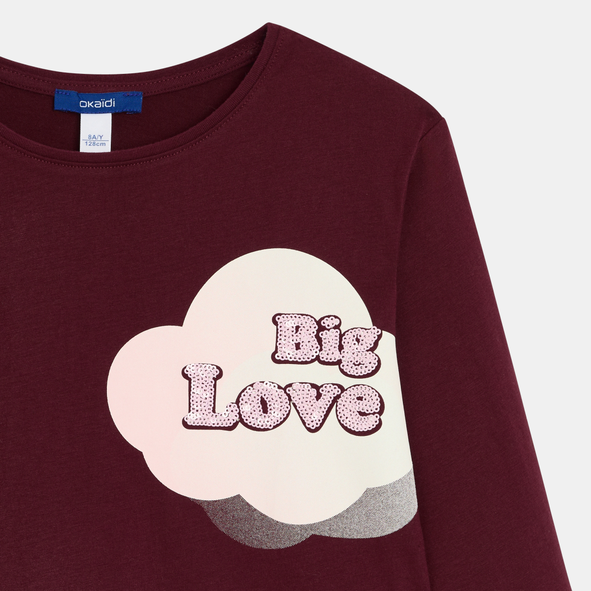 Description A offrir à toutes les filles qui ont un cœur "grand comme ça"! On adore le message en sequins brodés sur un nuage rose. Jersey doux. Coupe droite. Col rond côtelé. Motif imprimé devant, dos uni. Manches longues. Base droite. Coutures ton sur ton.