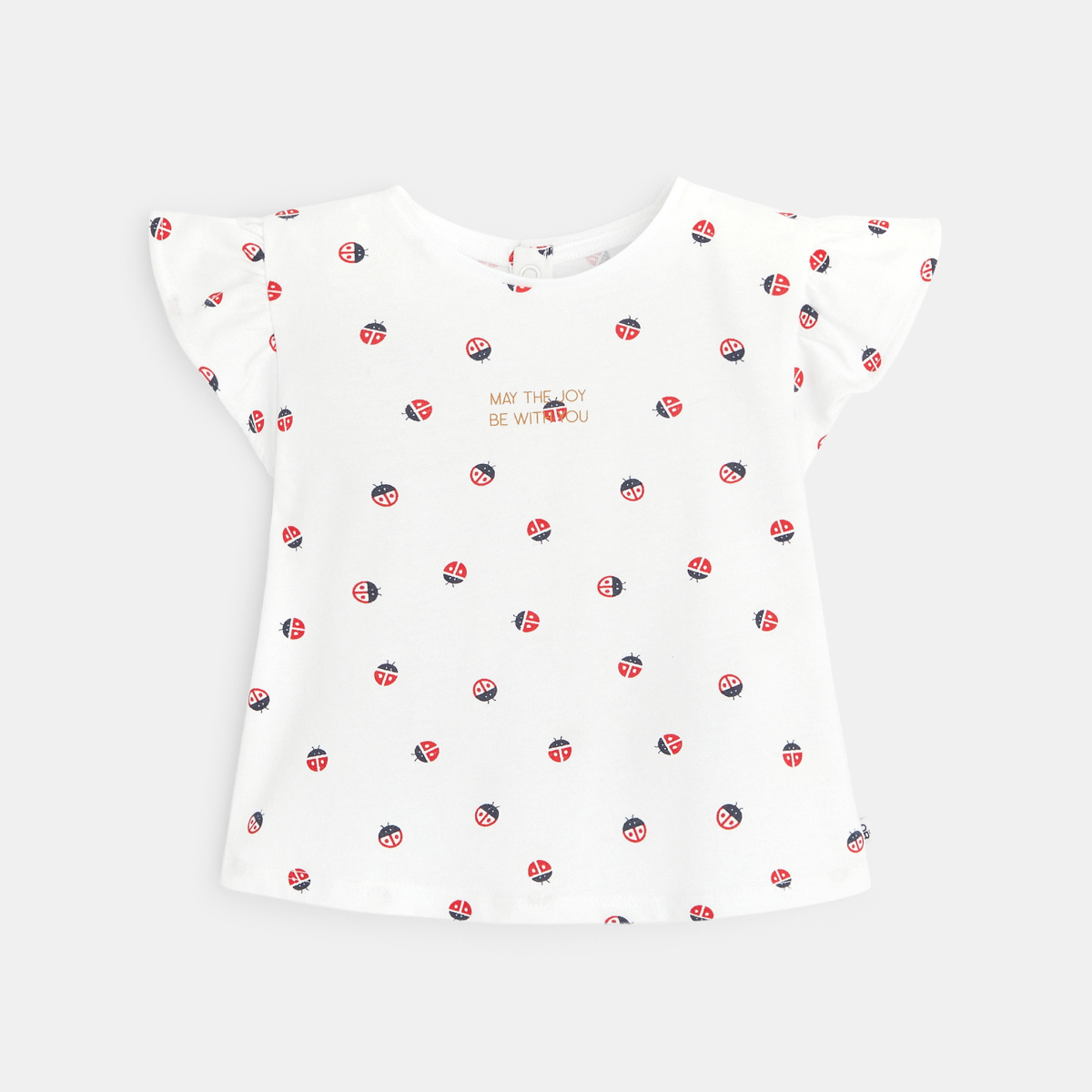 Des manches papillons comme de petites ailes de coccinelles, pour ce tee-shirt qui pétille de vies ! Une maille jersey douce et une encolure pressionnée dos pratique pour s'habiller plus facilement.