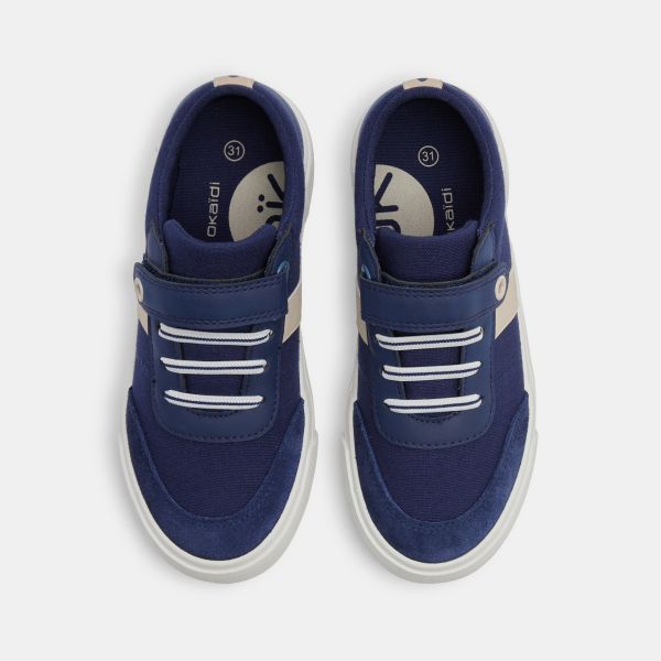 Un look chic pour une basket en toile colorée : les garçons ne quittent plus ces chaussures ! Fermeture par scratch et lacets élastiqués jusqu'au 35. Renfort à l'avant.