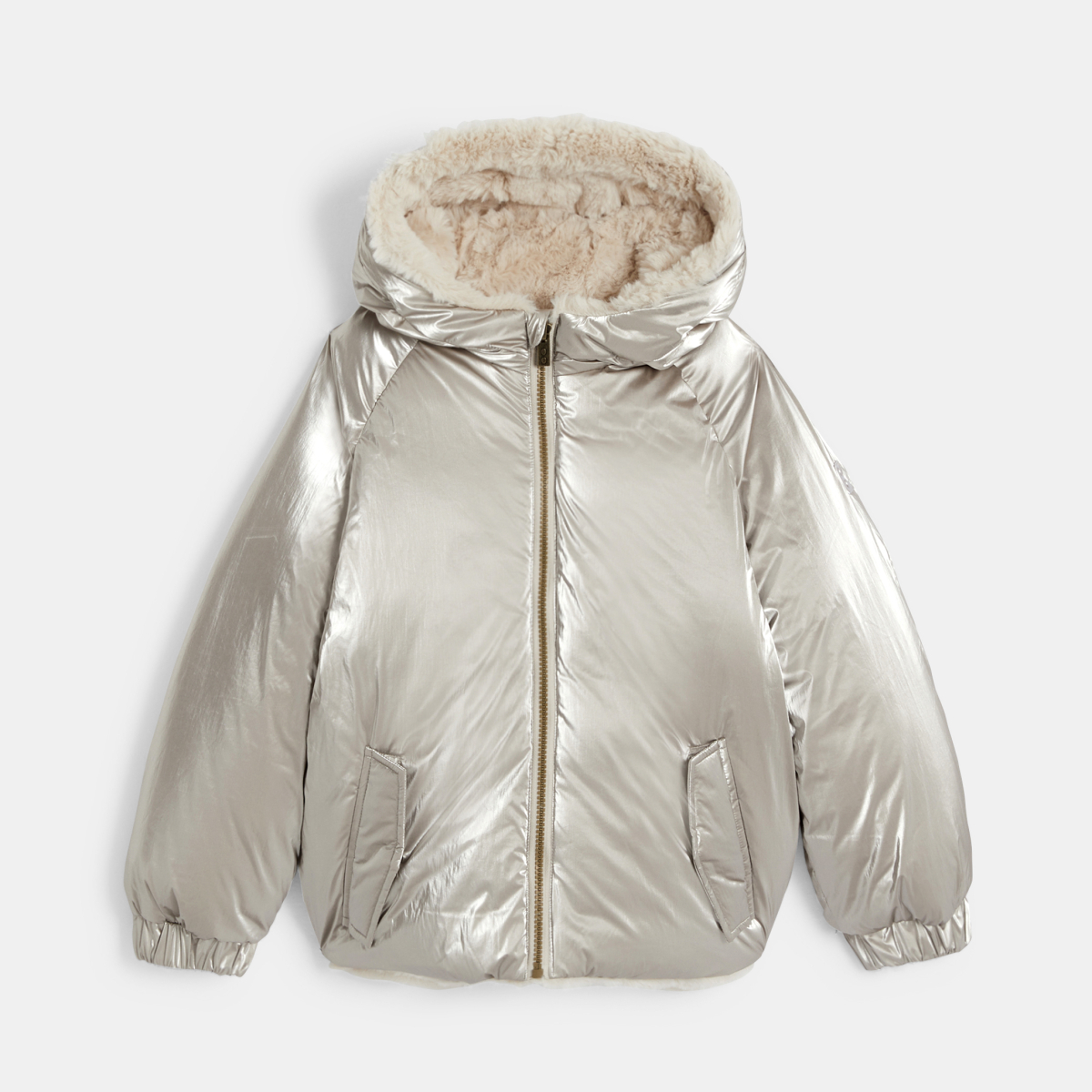 Blouson réversible fausse fourrure doré Fille